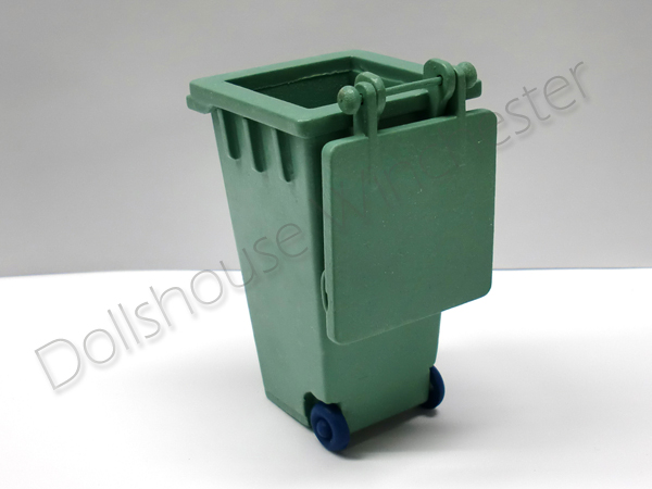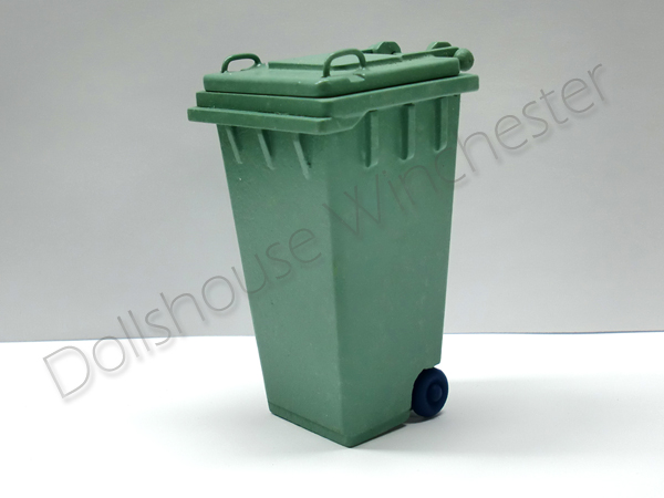 英国より直輸入 1/12サイズのドールハウス用品です。Green Wheelie Binサイズ: 45x55x90 mm