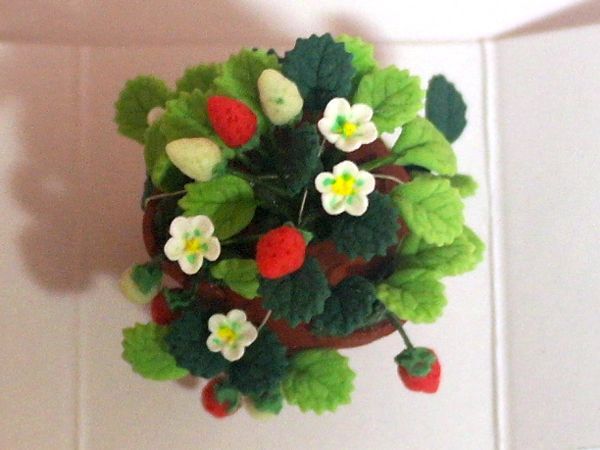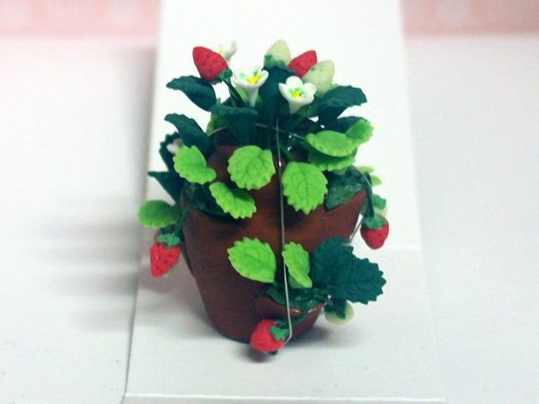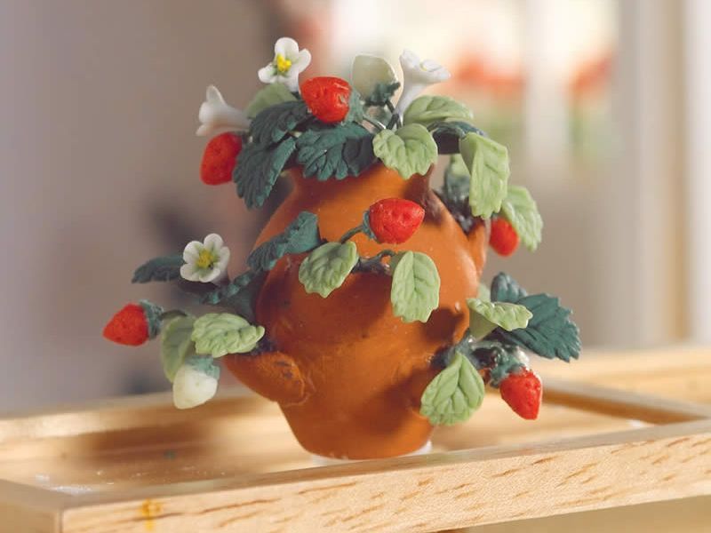 英国より直輸入 1/12サイズのドールハウス用品です。英国エンポリューム社製ストロベリー・プランター・ポットサイズ:約 Ф35 x 高45 mm、Strawberry Plants in a Pot