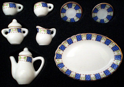英国より直輸入 1/12サイズのドールハウス用品です。ティ セット Oval Dark Blueサイズ:オーバル・プレート:約 35 x 50 mm、Oval Dark Blue Teaset