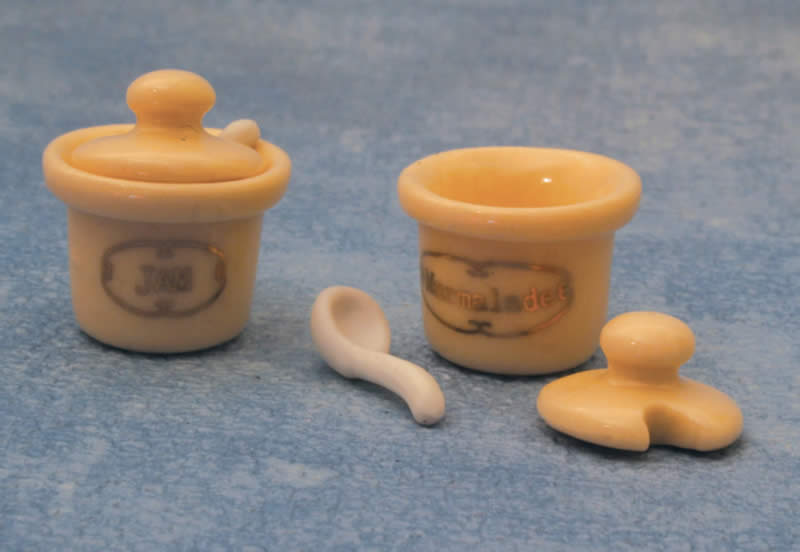 英国より直輸入 1/12サイズのドールハウス用品です。ジャム & ママレード ポット 2個サイズ:約 Ф15 x 高18 mm、Jam & Marmalade Pots