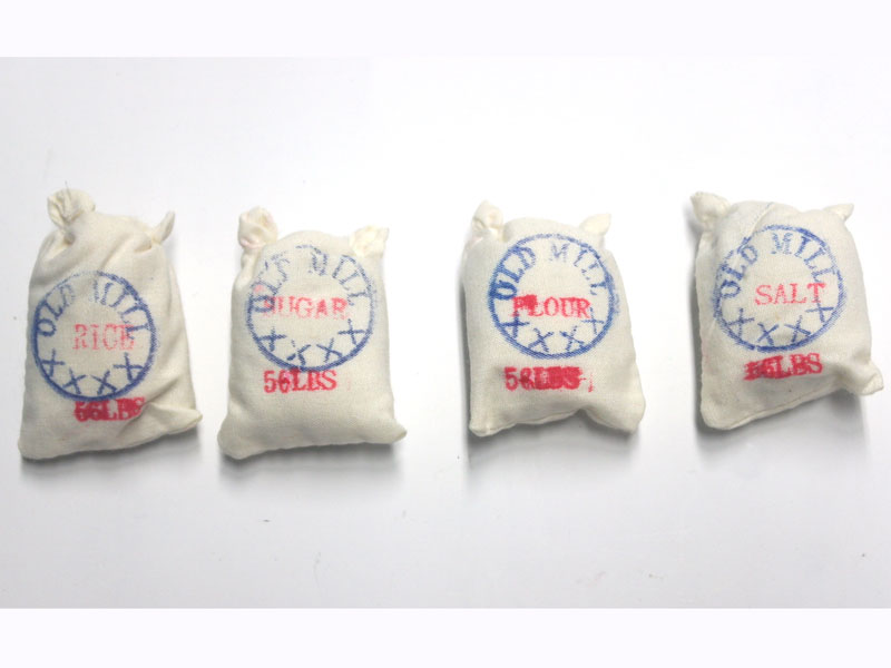 pk4 Sacks (S9225),Four Food Sacks, Sugar, Flour, Salt & Rice