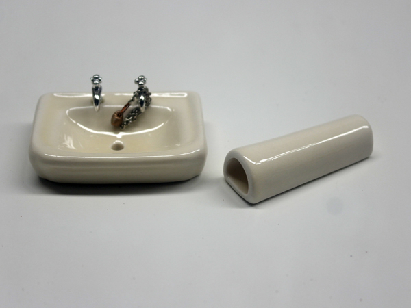 ホーム | リビング小物・ドールハウス用 > バスルーム家具・小物足付洗面台(水道蛇口・栓付)四角