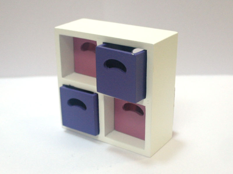 ホーム | 家具・ ドールハウス用 > リビング・玄関・書斎家具ストレージユニット ホワイト &ストレージボックス ローズ/ライラック セット