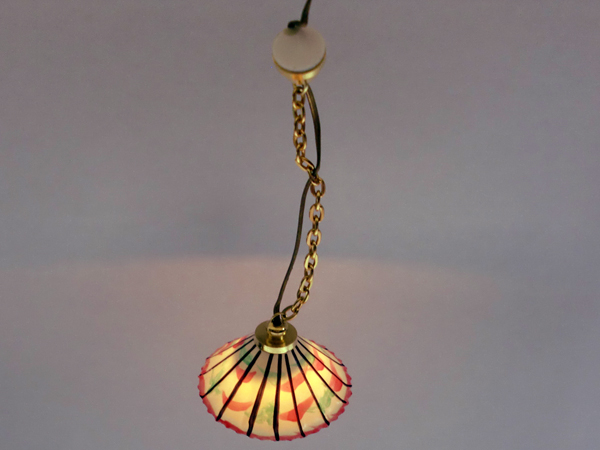 ホーム照明器具(天井・壁・その他用・電気部品)・ドールハウス用照明 天井用 吊り下げ ピンク&グリーン