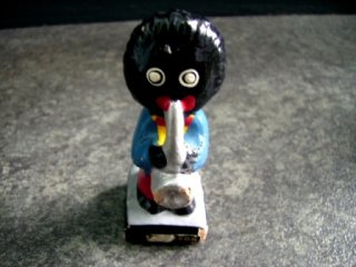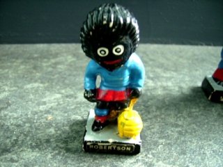 1864年創業のイギリスの食品メーカーロバートソン社のキャラクター「ゴーリー」の素焼きの人形です。ロバートソン創立者の息子のジョン・ロバートソンが北アメリカの未開拓地で「ゴーリー」と出会った事がきっかけで1900年代初頭よりロバートソンのキャラクターに起用されました。