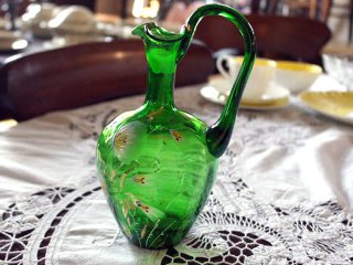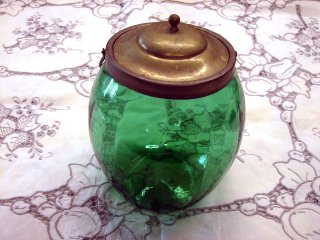 クッキー入れ グリーンクグラス・シルバープレート蓋付 [7330157]