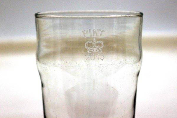 イギリスより入荷しました フランス製 アルコロック のパイントグラスです。王冠マークのPINT表記有り経年によるスレ、使用キズが多く見られます。サイズ:直径 8.7 x 高さ 15.2cm