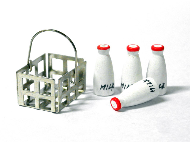 ホーム | キッチン・ダイニング小物・ドールハウス用 > ドリンク・ボトルミルク4本セット バスケット入り