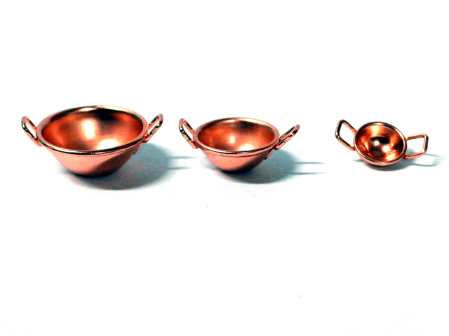 ホーム | キッチン・ダイニング小物・ドールハウス用 > 調理用具・道具銅 ボウル3点セット