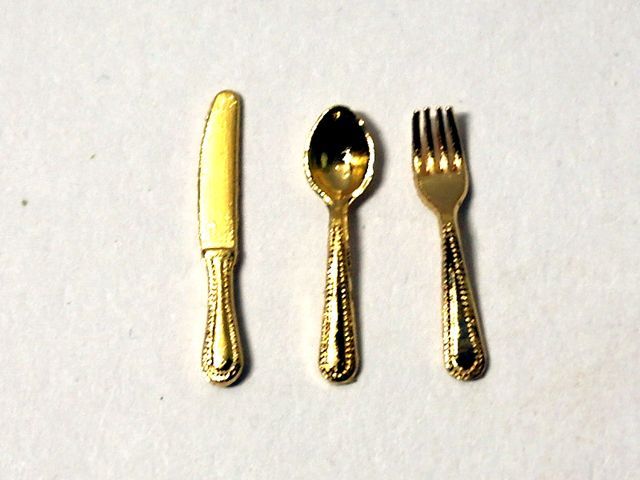 ホーム | キッチン・ダイニング小物・ドールハウス用 > 食器/カトラリー類カトラリー3点セット ゴールド