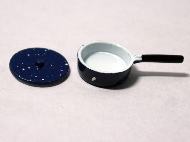 ホーム | キッチン・ダイニング小物・ドールハウス用 > 調理用具・道具ソースパン(鍋) 小 エナメル・ブルー