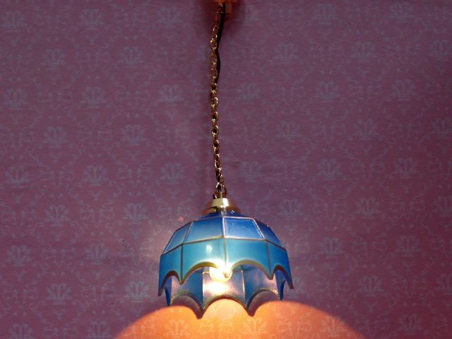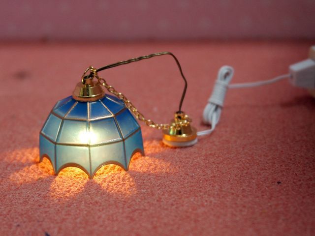 ホーム照明器具(天井・壁・その他用・電気部品)・ドールハウス用照明 吊り下げ ティファニー ブルー