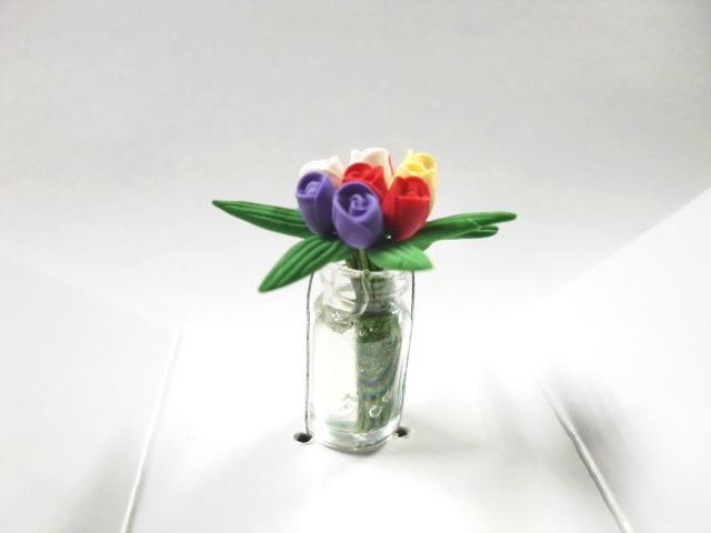 ホーム | ガーデン小物・ドールハウス用 > フラワー・鉢植えガラス花瓶入り”チューリップ”