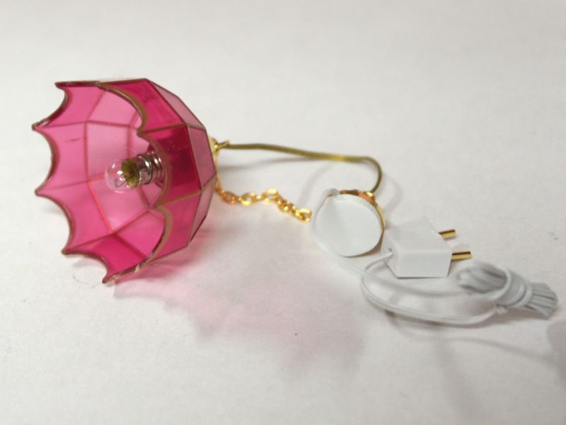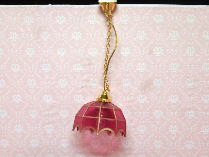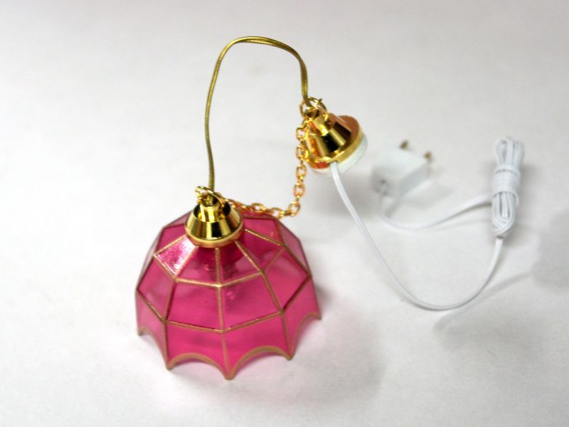 ホーム照明器具(天井・壁・その他用・電気部品)・ドールハウス用照明 吊り下げ ティファニー ピンク35mm