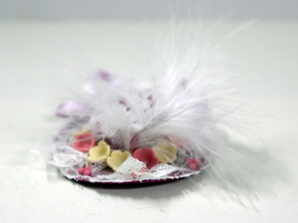 ホーム | リビング小物・ドールハウス用 > 紳士・婦人用小物羽付き婦人用帽子 マゼンタ/レース
